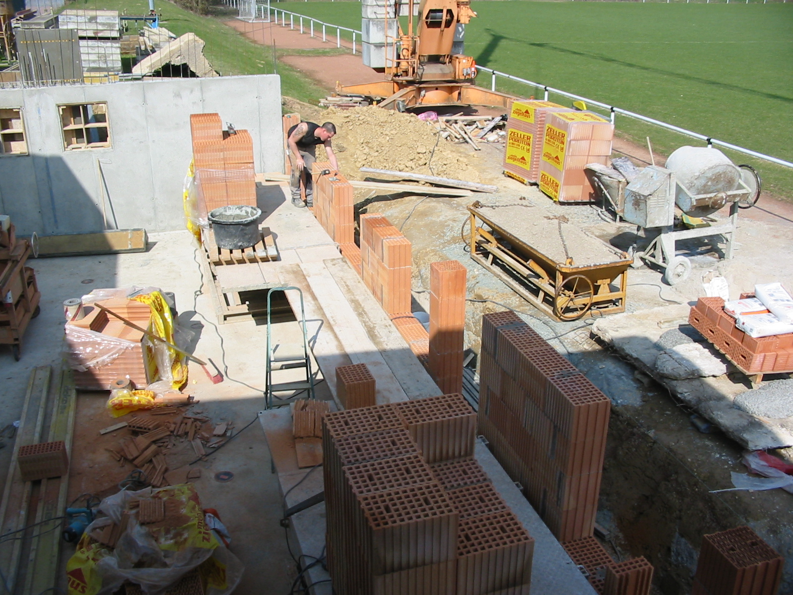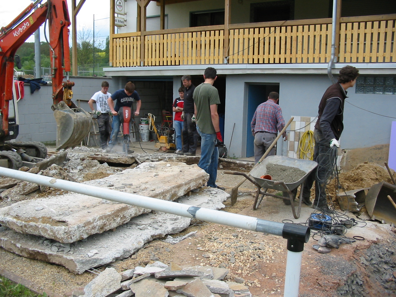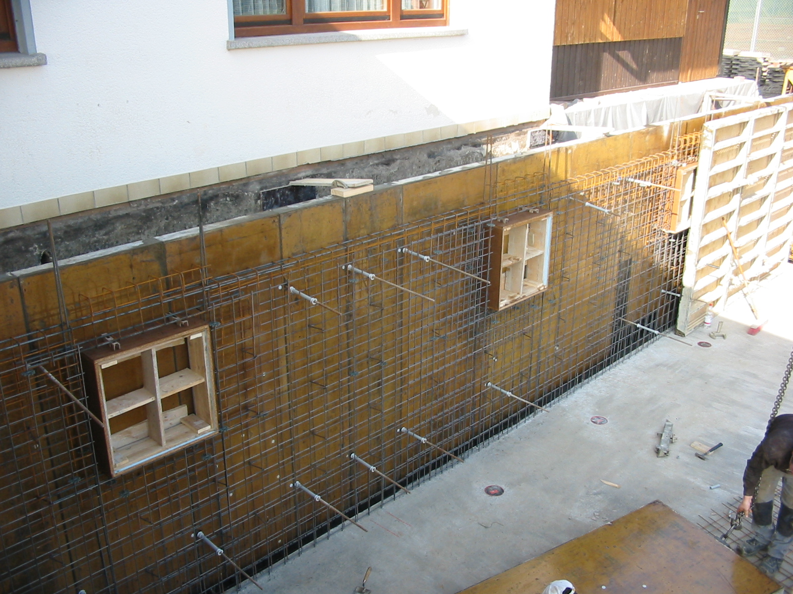 Danach begann der eigentliche Teil des Baus mit der Fertigstellung der Bodenplatte und dem Legen der Abflussrohre...