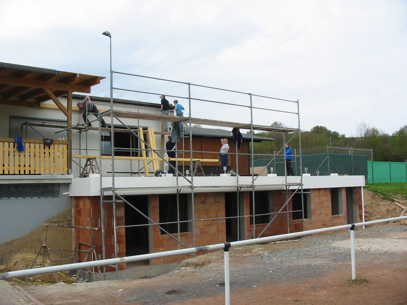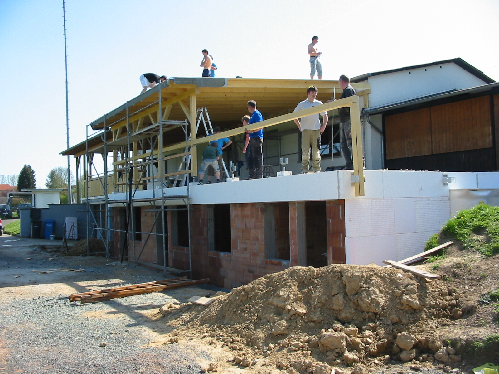 Dank schönem Wetter und dem großem Arbeitseifer der Mitglieder ist der Bau der Überdachung innerhalb von zwei Tagen erledigt.