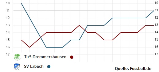 Nun aber zum Gegner: TuS Drommershausen - die Mitgereisten vom Auswärtsspiel erinnern sich sicherlich an das bittere Unentschieden, bei der man ähnlich entsetzt war wie die Schalker am vergangenen Wochenende. Dort kassierte man kurz vor Schluss einen Elfmeter, wo kein beteiligter auf dem Feld wusste warum und wofür der Schiedsrichter sich in dieser Situation für einen Elfmeter entschieden hat. Später musste man mit hängenden Köpfen und zwei Punkten weniger zurück nach Hause fahren.